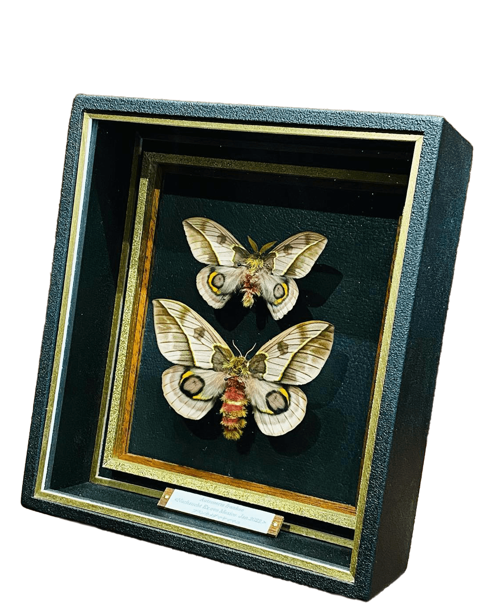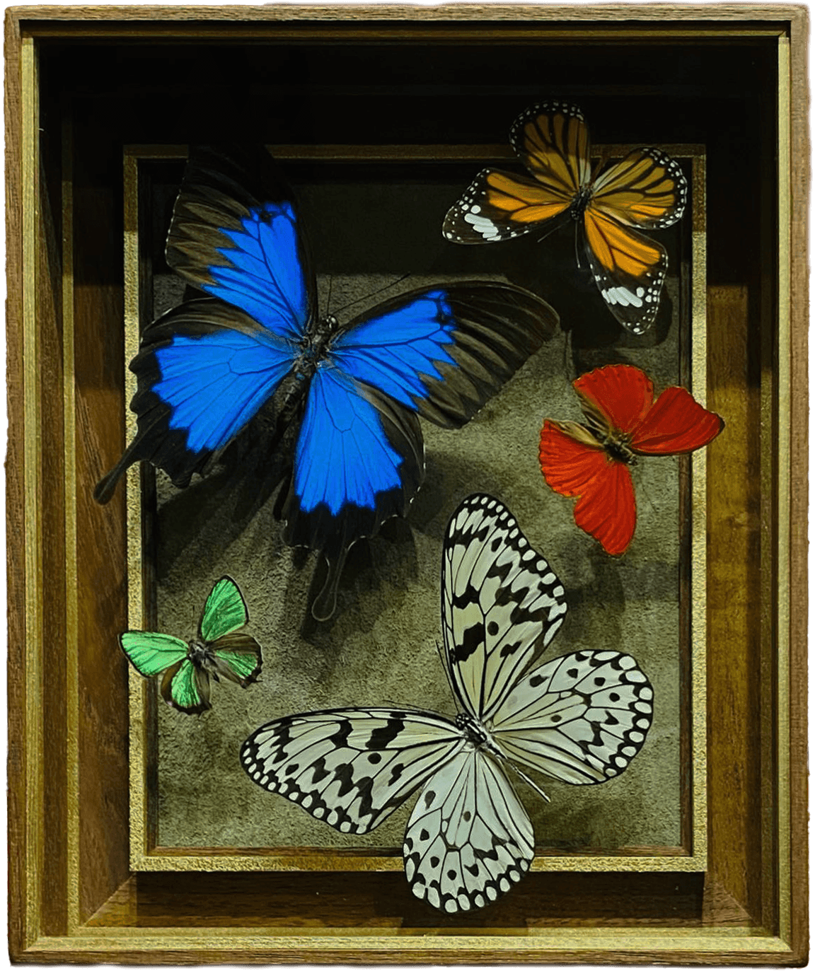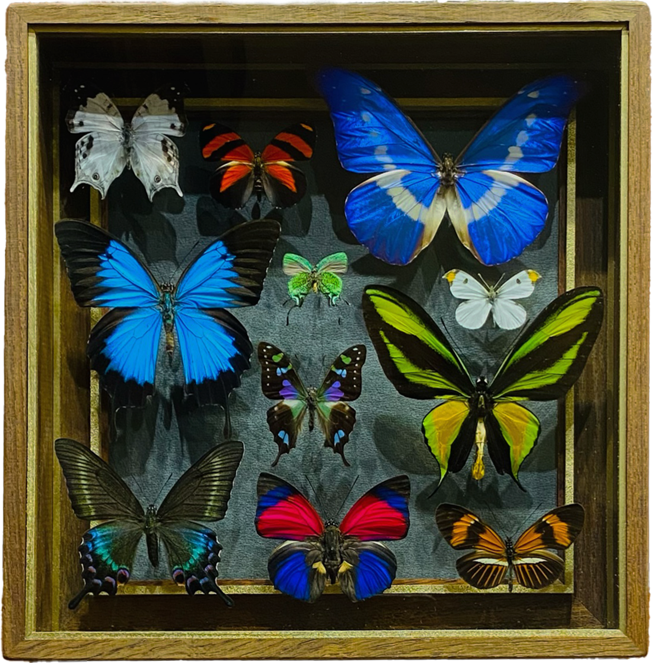 当館の標本箱は、お選びいただいた昆虫の美しさがいちばん引き立つものを提案・制作します。木の風合いや仕上げにもこだわり、同じものは二つとない“世界に一つだけ”の仕上がりに。