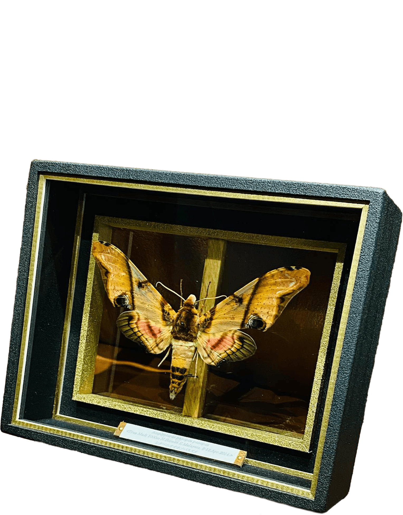 当館の標本箱は、お選びいただいた昆虫の美しさがいちばん引き立つものを提案・制作します。木の風合いや仕上げにもこだわり、同じものは二つとない“世界に一つだけ”の仕上がりに。